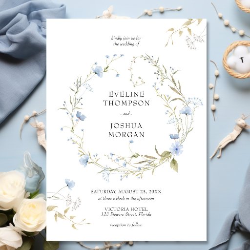 Delicate boho blue wildflowers wreath frame sage Criado por Violet Pironkova - VP Graphic Design Studio