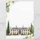 Mande seus convidados através de seu dia especial com este Elegante Watercolor Estate Flat Wedding Program, maravilhosamente projetado com florais brancos suaves, verde-luxuoso e uma ilustração pintada manualmente do Monarch Manor. Este layout plano oferece um sentimento eterno e romântico, perfeito para um casamento no jardim, no terreno ou no campo. A frente apresenta uma mistura refinada de fontes serif e script que mostram os nomes e detalhes da cerimônia do casal. A parte traseira pode ser personalizada com sua lista de festas de casamento, linha do tempo ou um obrigado especial para os convidados. Impresso no estoque de papelão premium, este programa clássico de casamento adiciona um toque coeso e elegante à sua cerimônia enquanto serve como um bem-estar apreciado.