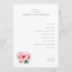 This wedding program features a minimalist and elegant layout with ample white space, creating a clean and sophisticated appearance. The design includes a central heading in a serif font, followed by a list of ceremony components arranged vertically with consistent spacing. A subtle illustration of pink peonies adds a touch of natural beauty to the composition, while the color palette primarily consists of black text against a white background. The typography is formal and traditional, enhancing the ceremonial theme and conveying a mood of elegance and refinement, perfect for celebrating this significant life event.