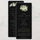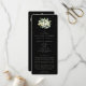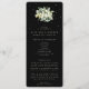 Um programa/ordem de cerimônia de casamento preto, com um esboço condensado da cerimônia e uma mensagem de agradecimento na frente e uma lista para um grande casamento no verso. Com arranjos de snowberries pintadas à mão e eucalipto na frente e no verso. Todo o texto é totalmente editável. Por favor, visualize esta Coleção na minha loja para programas com palavras/alinhamentos alternativos e em diferentes tamanhos/cores/formatos. Itens coordenados também disponíveis.