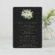 Um simples programa/ordem de cerimônia de casamento preto, apresentando um buquê/ramalhete de snowberries e eucalipto pintados à mão na frente e uma coroa na parte de trás. Todo o texto é totalmente editável. Por favor, visualize esta Coleção na minha loja para programas com redação alternativa e em diferentes tamanhos/cores/formatos. Itens coordenados também disponíveis.