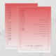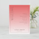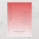 Este programa de casamento apresenta um design minimalista e elegante com um layout vertical, dividido em duas seções por uma transição de cor gradiente do rosa coral profundo ao rosa pêssego mais claro. O lado esquerdo exibe proeminentemente a palavra "BEM-VINDO" em fonte serifada maiúscula e negrito, enquanto a seção direita lista os eventos da cerimônia em um formato estruturado e centralizado, usando espaçamento amplo para legibilidade. Espaços personalizáveis permitem a personalização com nomes e datas no centro inferior, aumentando sua versatilidade. A estética limpa e moderna utiliza o espaço negativo de forma eficaz, criando um clima sofisticado e formal adequado para uma ocasião cerimonial importante.
