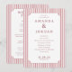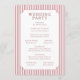 Este programa de casamento apresenta um layout retangular elegante com orientação vertical, emoldurado por listras diagonais rosa e branco nas laterais. A área central exibe um fundo creme suave bordeado por uma moldura decorativa com cantos ornamentados, criando um visual clássico e sofisticado. O design utiliza uma paleta de cores harmoniosa de tons rosa suaves, cremes e marrons profundos, evocando calor e tradição. A tipografia é clara e estruturada, com seções personalizáveis para nomes, detalhes da cerimônia, data e local, tornando-a perfeita para personalização. Ideal para casamentos, este programa combina formalidade com um toque de charme, estabelecendo o tom para uma celebração memorável.