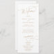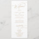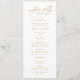 Este elegante programa de casamento branco e ouro é perfeito para um casamento simples. A design moderna minimalista apresenta caligrafia romântica branca e eterno de ouro com estilo de conto de fadas boêmico. Personalize o seu modelo do programa de casamento com os nomes do casal, a data e o local do casamento, o obrigado da mensagem, a ordem de serviço, a festa de casamento e um memorial opcional de "na memória amorosa".