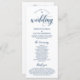 Elegante Classy, em Marinho Blue script, programa de cerimônia de casamento no cartão de 4x9 polegadas. Ele foi projetado com sotaque de rolagem que pode ser personalizado com texto personalizado/ personalizado para seu partido noiva, detalhes da cerimônia, notas memoriais e mensagem de obrigado. Se estiver procurando outros tipos e tamanhos de cartão de programa, procure a nossa seção correspondente de coleção de cartões de programa.