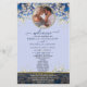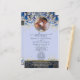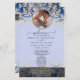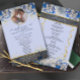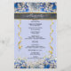 Pegue um programa de casamento único que você pode personalizar completamente para torná-lo especial e exclusivo para o seu casamento. o design vem com um quadro onde você pode colocar sua foto com seu homem ou com sua mulher, o quadro que vem com o miçanga complementará a foto do dentro casal e fará o cartão parecer tão elegante. A Elegante Floral e Daisy classe e o elegante cartão do programa de casamento com sotaque azul e dourado.