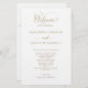 Programa de Casamento Elegante com bela caligrafia escrita à mão em matizes ouros. Capacidade de fazer alterações e ajustes de texto selecionando personalizar ainda mais. Frente com detalhes da cerimônia de casamento, volte com nomes de festa de casamento e obrigado que envie para seus convidados. NOTA: o texto não está em folha real, mas sim em preferencialmente todos os detalhes da caligrafia em imagens falsas enquanto o resto do texto está em tons de ouro. Parte da nossa coleção "Elegant Calliografia Minimalist Wedding Collection" com vários produtos de coordenação disponíveis. Visite a coleção inteira em: https://www.zazzle.com/collections/elegant_calligraphy_minimalist_wedding_stationery-119497981924462546