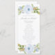 Um elegante e moderno programa de casamento floral com uma bela disposição de flores aquáticas em tons de azul empoeirado e pêssego. Podemos personalizar as cores das flores para combinar com o tema do seu casamento; basta nos contactar no modernmatrimony(at)gmail(dot)com e permitir uma semana de personalização.