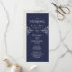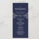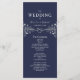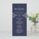 Elegante moderno e minimalista programa de caligrafia simples, marinho programa de casamento azul com corda de prata romântica e um lugar floral dourado.