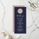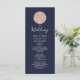 Programa de casamento simples, elegante, mínimo cor-de-rosa e azul-marinho com monograma e roteiro moderno.