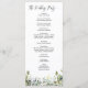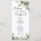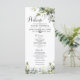 Este programa de casamento apresenta um toque elegante com um roteiro caligráfico moderno e belo, com texto regular acompanhado de um arranjo de folhas de folhagem eucalipto verde de cor aquosa. Vestir com sua própria imagem no fundo e uau seu convidado. Você pode personalizar o texto e personalizar o nome, a data e o local do casal junto com os detalhes do programa. Nota: Não é possível alterar, editar ou eliminar o arranjo das folhas verdes juntamente com o trabalho de arte de linha. Você só pode mudar a cor das elegantes palavras caligraficas de "Casamento", "Cerimônia", "Obrigado", e "A Festa de casamento" e a trabalho de arte do anel de casamento. Você pode personalizar o programa de qualquer maneira que quiser.