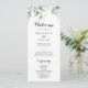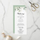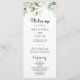Este elegante programa de casamento de caligrafia verde-ouro é perfeito para um casamento simples. A design apresenta ouro desenhado à mão e folhas de eucalipto verdes botânicas, inspirando beleza artística.