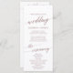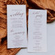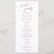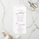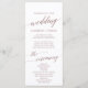 Este elegante programa de caligrafia rosa de ouro é perfeito para um casamento simples. A design cor-de-rosa-pincelada apresenta uma carta minimalista decorada com tipografia da folha de ouro rosa-falso romântica e caprichosa. Inclua o nome da noiva e do noivo, a data e o local do casamento, a mensagem do obrigado, a ordem do serviço, a festa noiva e um memorial "em memória amorosa" opcional. Nota: Este design não apresenta folha de ouro rosa real. É um gráfico de alta qualidade feito para se parecer com folha de ouro rosa.