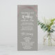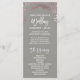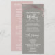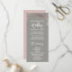 Este elegante programa de casamento de rosa e cinzas é perfeito para um casamento clássico. O design apresenta uma impressionante armação rosa-rosa-rosada num fundo de cinza escuro e é emparelhado com uma fonte encantadora e cursiva. Inclua o nome da noiva e do noivo, a data e o local do casamento, a mensagem do obrigado, a ordem de serviço, a festa de casamento e um memorial "em memória amorosa" opcional. Nota: Este design não apresenta folha de ouro rosa real. É um gráfico de alta qualidade feito para se parecer com ouro rosa brilhante.