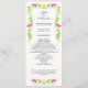 © Designs socialitas. Uma folha elegante, uma borda floral e espiral com uma bela combinação de cores, verde, fúcsia e programa de casamento amarelo. O estilo da fonte, o texto e o tipo de papel podem ser alterados. Precisa de ajuda para personalizar ou uma combinação de cores diferente para o seu evento? Por favor, não hesite em contactar Designs socialitas com os seus requisitos.