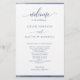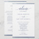 Elegante programa de casamento azul marinho com faixas delicadas de marinho azul-d-água com coloração d'água, enquadrando seus detalhes do programa de casamento. Capacidade de fazer alterações e ajustes de texto selecionando personalizar ainda mais. Frente com detalhes da cerimônia de casamento, com nomes de festas de casamento e obrigado que você mande para seus convidados ou qualquer outro texto que você quiser, o nosso é simplesmente um exemplo. Sentimento elegante, simples e gracioso. Iniciais Parte de nossa Coleção "Casamento do Monograma Botânico de Aquarela do Marinho" com uma variedade de produtos de coordenação disponíveis, incluindo menu, cartões de assentos de mesa, números de tabelas, cartões de agradecimento e muito mais. Visite toda a coleção com este link: https://www.zazzle.com/collections/navy_watercolor_botanical_monogram_wedding-119781162008756698