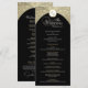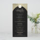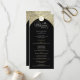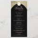 Este programa de casamento mostra um dramático fundo negro, acentuado com o florescimento das damascos do ouro, criando um design que é simultaneamente eterno e luxuoso. No topo, uma crista decorativa acrescenta um toque refinado, enquanto o layout central exibe os nomes do casal e os detalhes do serviço de casamento em um formato claro e elegante. A rica combinação de preto e ouro transmite sofisticação e grandiosidade, fazer este cartão de programa ideal para celebrações formais, tradicionais e noturnas de casamento.