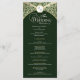 Este programa de casamento apresenta um rico fundo verde adornado com florescimento de damascos de ouro, criando um estilo luxuoso e eterno. Uma crista decorativa fica no topo, enquanto o layout central destaca os nomes do casal e todos os detalhes do serviço de casamento em formato refinado e organizado. A elegante combinação de verde e ouro traz um olhar sofisticado e real, fazer este cartão de programa uma escolha perfeita para casamentos formais, tradicionais e noturnos.