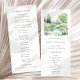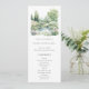 Capturar o romance da natureza com este elegante programa de casamento do jardim de aquarelas. Apresentando um lago sereno, um verde exuberante e flores delicadas, este design é perfeito para celebrações de exterior, botânica ou verão. Modelo totalmente personalizável para se adequar a temas modernos ou rústicos de casamento.