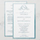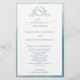 Vidro do mar Elegante Programa de Casamento com belo monograma desenhado à mão e moldura de aquarela em tons de turquesa de vidro do mar. Elementos modernos de caligrafia manuscritos. Capacidade de fazer alterações e ajustes de texto selecionando "Editar usando a ferramenta design". Frente com detalhes da cerimônia de casamento, volte com nomes de festa de casamento e obrigado que envie para seus convidados. Parte da nossa coleção "Sage Sea Glass Watercolor, Botanical Monographic Wedding" com uma variedade de produtos coordenadores disponíveis.