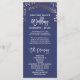 Este elegante programa de casamento de rosa e marinho é perfeito para um casamento clássico. O design apresenta uma impressionante moldura rosa-pincelada num fundo azul escuro e é emparelhado com uma fonte encantadora e cursiva. Inclua o nome da noiva e do noivo, a data e o local do casamento, a mensagem do obrigado, a ordem do serviço, a festa noiva e um memorial "em memória amorosa" opcional. Nota: Este design não apresenta folha de ouro rosa real. É um gráfico de alta qualidade feito para se parecer com ouro rosa brilhante.