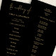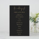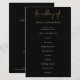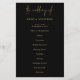 Programa Elegante de Casamento Negro Dourado. Tamanho de 5,5" x 8,5" a um preço orçamentário, um elegante design tipográfico em ouro e preto para os seus programas de casamento. O cabeçalho principal está em um script na moda set e o resto do texto que você pode personalizar facilmente. Você pode alterar as cores do texto e do plano de fundo se quiser combinar o tema da cor do casamento através da opção Personalizar Mais, assim como de outras opções que você precisar. Se precisar de assistência para a edição deste design, por favor, envie-me uma mensagem.