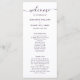 Elegante programa de casamento roxo com uma fonte moderna. Itens correspondentes disponíveis.
