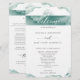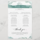 Bem-vindos e encantem seus hóspedes com este elegante e romântico programa de Casamento, distinto por manchas de aquarela que incluem seus detalhes em tons azuis/verdes. Banda de aquarela estonteante com fina floreal desenhada à mão no topo, mostrando frase "bem-vinda" na frente e "Festa de casamento" no verso. Aquarelas numa mistura saborosa de sábado prateado, névoa, eucalipto e matizes de seafoam. Utilização de elementos caligráficos modernos. Parte da nossa coleção "Silver Sage Watercolor".