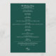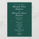 Mande seus convidados através do dia especial com esses impressionantes programas de casamento verde esmeralda. Apresentando um rico fundo verde com um texto branco nítido, estes programas fornecem uma bela e organizada visão geral da sua cerimônia. Personalize com os nomes do casal, a data do casamento e os detalhes da cerimônia para adicionar um toque único. A tipografia tradicional da escrita adiciona uma elegância eterno, assegurando que seus hóspedes se sintam informados e apreciados durante toda a celebração.