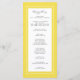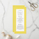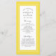 A design do programa de casamento amarelo e branco iluminante apresenta uma bela borda chic em amarelo que inclui uma elegante borda branca petite. Personalize os detalhes da cerimônia de núpcias para seus hóspedes em letras de cinza de carvão e escrita em fundo branco. A parte traseira da placa combina com amarelo em branco nítido e é tudo sobre sua festa de casamento! Um modelo moderno para data e ano complementa o design único de caligrafia. [NOTA: a exibição da data de casamento, conforme mostrado, usa o bar vertical ou a linha que pode ser encontrada acima do \ em um teclado ou no seu dispositivo inteligente com os caracteres especiais. Você também pode personalizar com qualquer outro caractere de sua escolha.] Para obter melhores resultados, siga as instruções e o espaçamento no modelo ao adicionar seus próprios detalhes. Entre em contato comigo em invitationsuites@gmail.com se você tiver dúvidas sobre este ou qualquer dos nossos produtos.
