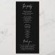 Mande seus convidados para o dia especial com este programa de cerimônia de núpcias preto e elegante. Com um fundo preto elegante, uma escrita branca moderna e uma tipografia limpa, esta design complementa perfeitamente os casamentos negros, monocromáticos ou contemporâneos. Personalize facilmente com seus nomes, data do casamento, ordem de cerimônia e notas especiais. Uma manutenção sofisticada para os convidados que se associam maravilhosamente a convites, menus, gráficos de assentos e outras papelaria coordenadora de casamento nesta coleção. Impresso em papel premium para um acabamento firme e profissional.