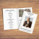 Elegante programa de funeral dobrado em branco com fotos, fontes elegantes e detalhes saborosos. Programa de funeral dobrado em branco com texto preto e detalhes elegantes personalizados com fotos, obituário, ordem de serviço e reconhecimentos.
