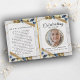 Personalize este programa funerário moderno e elegante com sua própria foto e texto para criar um tributo especial a seu amado. Um programa "In Loving Memory" com uma fita azul com efeito 3d e um programa memorial de sotaque dourado. No cobrir da frente está uma foto do seu amado, seu nome, datas, o local do memorial e a data do evento. Na dentro está um obituário e uma ordem de serviço, e na parte de trás está uma nota de agradecimento e o local da Nossa loja também oferece outros designs que estão oferecendo verde botânico com rosas e folhas de sotaque design e brilho/ouro e folhagem Eucalipto para atender a todas as demandas.