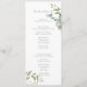 Este único design botânico apresenta um galho curvante de folhas elegantes de eucalipto com cor d'água com folhas artísticas de prata esboçadas e flores brancas silvestres.