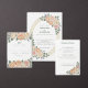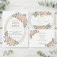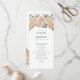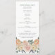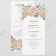 Conduza seus convidados através da sua cerimônia com este elegante programa de casamento personalizado da "Peach Blossom & Golden Lattice Suite". Este lindo design apresenta um arranjo suave em aquarela de rosas pêssego, ranúnculos creme e eucalipto verde-sage, lindamente drapeados sobre uma treliça geométrica moderna em dourado. Totalmente personalizável, este modelo fornece amplo espaço para detalhar a sua ordem específica de eventos, apresentar o seu cortejo e compartilhar uma mensagem sincera de agradecimento com os seus convidados. É uma mistura deslumbrante de romance clássico e elegância moderna que se coordena perfeitamente com o seu conjunto de papelaria.