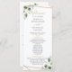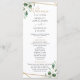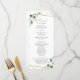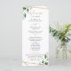 Projetado para coordenar com a nossa coleção de casamento Moody Greenery, este programa de cerimônia personalizável apresenta uma folhagem verde de eucalipto aquosa, realçada com um quadro geométrico dourado no verso, emparelhada com texto dourado e cinza. Para fazer alterações avançadas, vá para a opção "Clique para personalizar mais" em Personalizar este modelo.