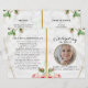 Personalize este programa funerário moderno e elegante com sua própria foto e texto para criar um tributo especial a seu amado. Um programa "In Loving Memory" que apresenta um rosismo floral com sotaque dourado e um programa memorial de fundo de mármore. No cobrir da frente está uma foto do seu amado, seu nome, datas, o local do memorial e a data do evento. Na dentro está um obituário e uma ordem de serviço, e na parte de trás está uma nota de agradecimento e o local da Nossa loja também oferece outros designs que estão oferecendo verde botânico com rosas e folhas de sotaque design e brilho/ouro e folhagem Eucalipto para atender a todas as demandas.