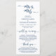 Sr. e Sra., Elegante Marinho Azul Moderno, Cartão do Programa de Cerimônia de Casamento. Ele foi projetado com sotaque de rolagem que pode ser personalizado com texto personalizado/ personalizado para seu partido noiva, detalhes da cerimônia, notas memoriais e mensagem de obrigado. Se estiver procurando outros tipos e tamanhos de cartão de programa, procure a nossa seção correspondente de coleção de cartões de programa.