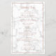 Um programa de casamento moderno e elegante com seus detalhes em um rosa de ouro falso, cercado por uma fronteira, sobre uma cinza e fundo de mármore branco. Os cabeçalhos estão em uma letra de script elegante. Adicione os eventos da sua cerimônia à frente e à sua festa de casamento atrás. Este design e chic é excelente para uma celebração no inverno. Estes programas de casamento baratos são impressos em folhas de papel para uma opção econômica.