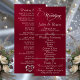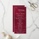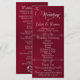 Este design romântico apresenta um elegante fundo burgundy com os detalhes da cerimônia de casamento e agradecimentos na frente, os membros da festa de casamento e o monograma do coração no verso. Disponível em várias cores para combinar com o tema do seu casamento. Projetado para combinar com a Coleção de Casamento "Romantic Scroll Hearts & Calligraphy".