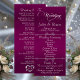 Este design romântico apresenta um elegante fundo de ameixa (roxo) com os detalhes da cerimônia de casamento e agradecimentos na frente, os membros da festa de casamento e o monograma do coração no verso. Disponível em várias cores para combinar com o tema do seu casamento. Projetado para combinar com a Coleção de Casamento "Romantic Scroll Hearts & Calligraphy".