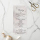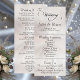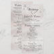 Este design romântico apresenta um elegante fundo de pérola branca com os detalhes da cerimônia de casamento e agradecimento na frente, os membros da festa de casamento e o monograma do coração no verso. Disponível em várias cores para combinar com o tema do seu casamento. Projetado para combinar com a Coleção de Casamento "Romantic Scroll Hearts & Calligraphy".