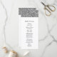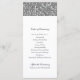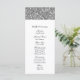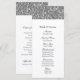 Este cartão permite descrever sua festa de casamento de um lado, e seu programa de cerimônia de casamento do outro. Personalize se você precisar adicionar linhas extras de texto. Apresentando uma imagem de brilho prateado (IMPRESSO—sem brilho real) contra um fundo branco.