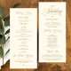 Este cartão de programa de casamento elegante e atemporal apresenta um design de tema creme dourado amarelo minimalista com caligrafia sofisticada para um toque clássico. Perfeito para cerimônias formais, o layout limpo permite que você apresente claramente a ordem do serviço, o casamento, e uma nota de agradecimento sincero aos seus convidados. Personalização Fácil, basta usar os campos de modelo fornecidos para adicionar seus nomes, data de casamento, local e detalhes da cerimônia.