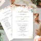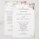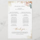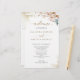 Elegante Wedding com elementos caligráficos modernos escritos à mão, delicados terractos e manchas de aquarela bege e detalhes florais de aquarela tanto na frente como no verso. Capacidade de fazer alterações e ajustes de texto selecionando personalizar ainda mais. Frente com detalhes da cerimônia de casamento, volte com nomes de festa de casamento e obrigado que envie para seus convidados. Sentimento moderno elegante. Bem-vindos e nomes de casais em matizes de ouro. Parte de nossa coleção "Terthy Blooms in Buttery Beige and Terracotta" com vários produtos de coordenação disponíveis. Também disponível com manchas de aquarelas em verde-salva.