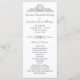 Este design clássico levará seus convidados a antecipar um casamento verdadeiramente elegante. Projetado em tons suaves e refinados de cinza contra o branco, o cartão do programa de casamento apresenta gravuras antigas de flores e fitas. Trabalhos de linha deliciosos e detalhes de ornamentado destacam a ornamentação, emprestando um ar sutil de refinamento e cortesia história. Personalize a placa de programa com todos os detalhes pessoais do evento, usando os modelos fáceis fornecidos, onde todos os estilos, tamanhos e cores de texto podem ser modificados. O verso do cartão também tem opções personalizadas para incluir todos os detalhes importantes do serviço de casamento.