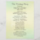 Programa de cerimônias de casamento astuciosas desenhado em um fundo de cor da água azul suave, verde e creme e padrão de espiral deco em letras de texto de cinza escura. Acentuado com uma simples lanterna de casamento branca no fundo. Design duplo com cerimônia na frente e detalhes do partido noivo e obrigado que você escreva no verso. Todo texto está formatado e pronto para que você simplesmente substitua ou remova onde for necessário no botão "Personalizar esta modelo". Você pode personalizar ainda mais nesse link inferior. Coordena o convite formal e toda uma coleção de artigos de noivado em Monogramas e Monikers no Zazzle. Mais itens mostrados com este design.