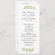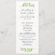 Este elegante programa de cerimônia de núpcias ao estilo design apresenta uma fuselagem de galhos pintados com aquarelas verdes com folhas que acentua esta design de tipografia moderna e mínima inspirada na natureza. Perfeito para um evento de primavera ou verão. Personalize o texto da cinza escura na moda em ambos os lados da placa com a sua cerimônia personalizada, festa de casamento e obrigado com o texto da mensagem.