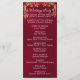 Esta design romântica apresenta um elegante fundo burgundy e borda de folhas de ouro, detalhes da cerimônia de casamento e obrigado você na frente com os membros da festa de casamento atrás. Disponível em várias cores para seu tema de casamento. Disponível em várias cores para seu tema de casamento. Projetado para coordenar com a Coleção de Casamentos de Doves Elegantes, Coração e Folhas Douradas. Para alterar os detalhes, clique em "Personalizar". Para mover o texto ou alterar o tamanho, a fonte ou a cor do texto, clique em "Clique para personalizar mais"