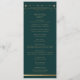 O Programa de Casamento Espacial da Lua Solar Dourada Verde Mística apresenta sol dourado, lua e estrelas com um quadro de ouro sobre um fundo verde com a sua ordem de cerimônia na frente e na festa de casamento e obrigado no sentido inverso em um roteiro dourado moderno. Personalize editando o texto nas caixas de texto fornecidas. Projetado para você por ©Evco Studio www.zazzle.com/store/evcostudio